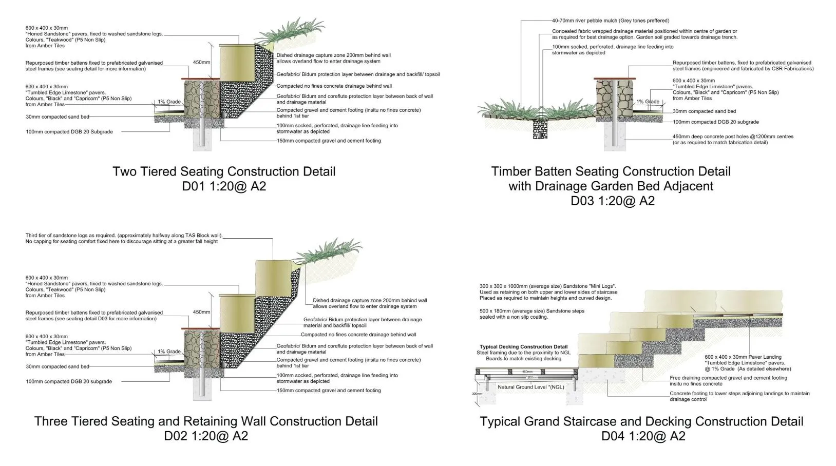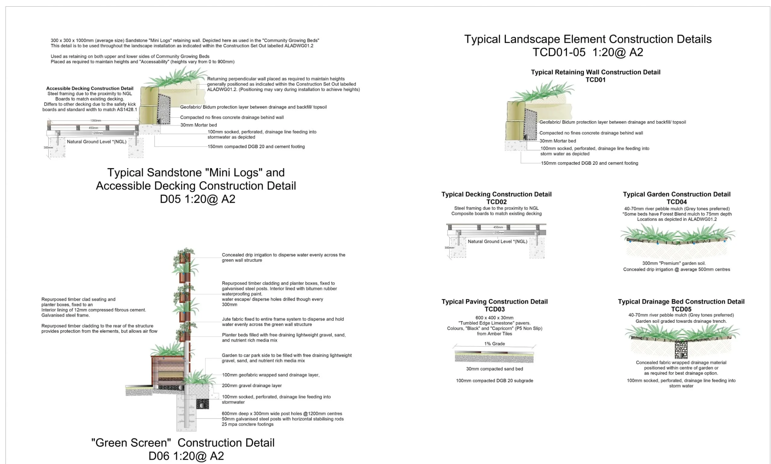 We bring your ideas to life by providing detailed digital landscape designs, including Landscape Concept Plans, IFC Drawings, or Construction-Ready Drawings with Set-Out Plans and Construction Detail Drawings. These can all be tailored to your specific requirements and form the foundation of a successful build.
