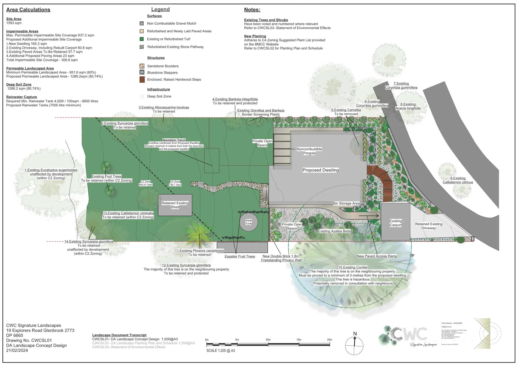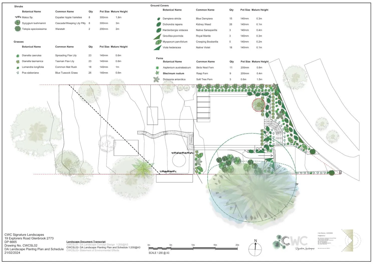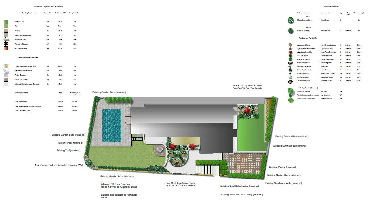 Need to lodge a DA or present a landscape design for council approval? We provide approved plans and supporting documents that meet specific local requirements for any council area, with a 100% approval rate achieved.